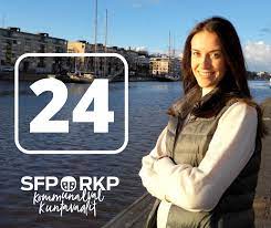 Rosanna Blomster ställde upp för SFP i Åbos kommunalval år 2020 (viktiga politiska frågor för henne är välmående kommuninvånare, kultur samt boende och byggande).(Rosanna Blomster, Facebook)